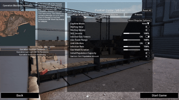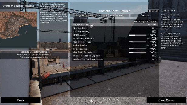 Custom Game Options added to Pandemic it supports the following: